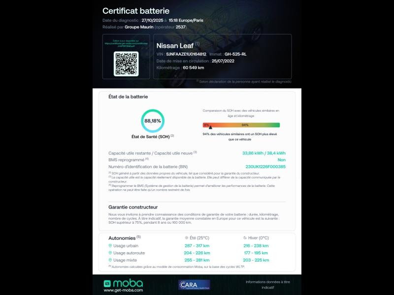 - Garantie : Nissan Intelligence Choice véhicules électriques 12 mois 12 mois